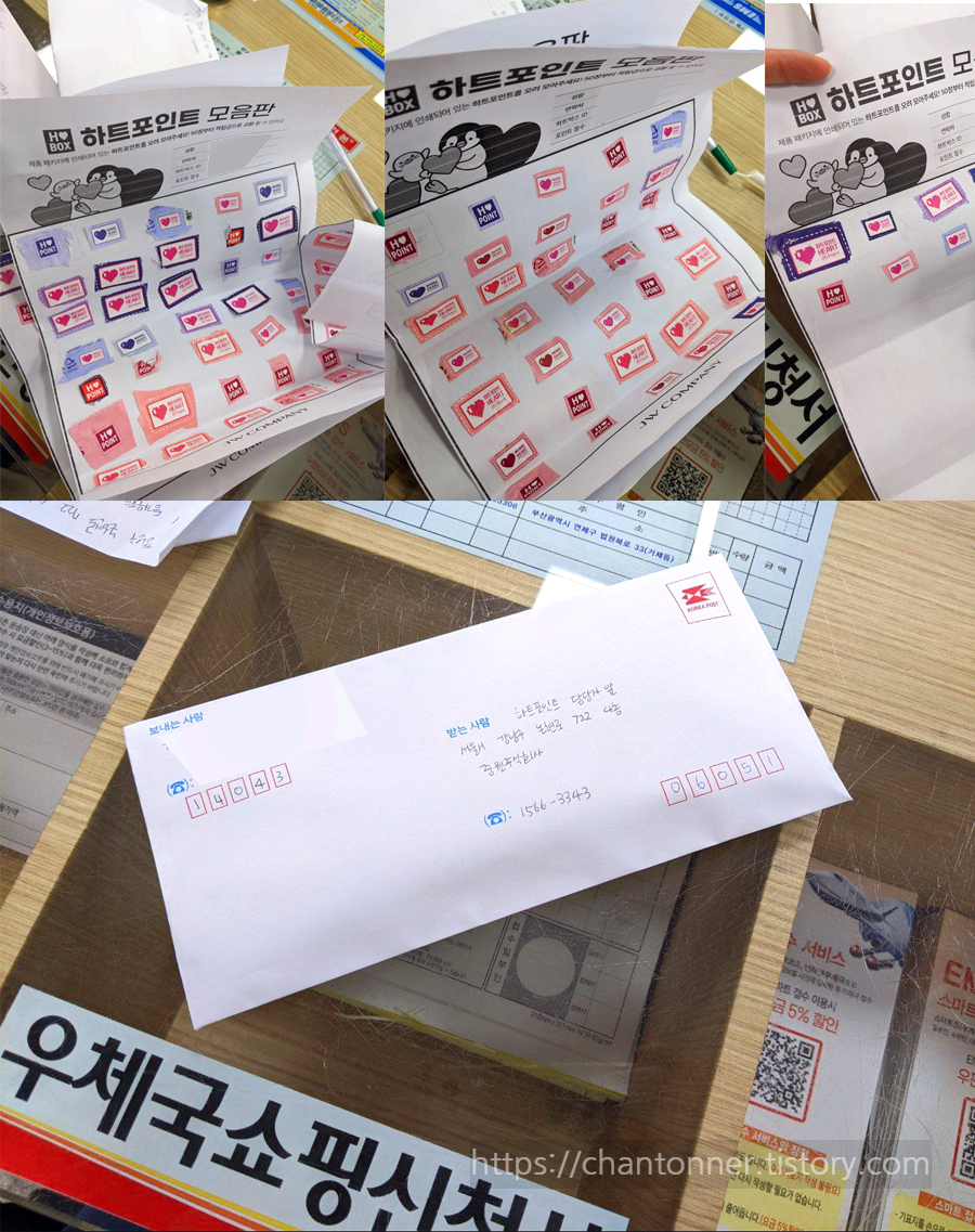 모음판에 붙이고 이름/연락처/아이디/수량을 기입한 후 동봉해서 보낸다.