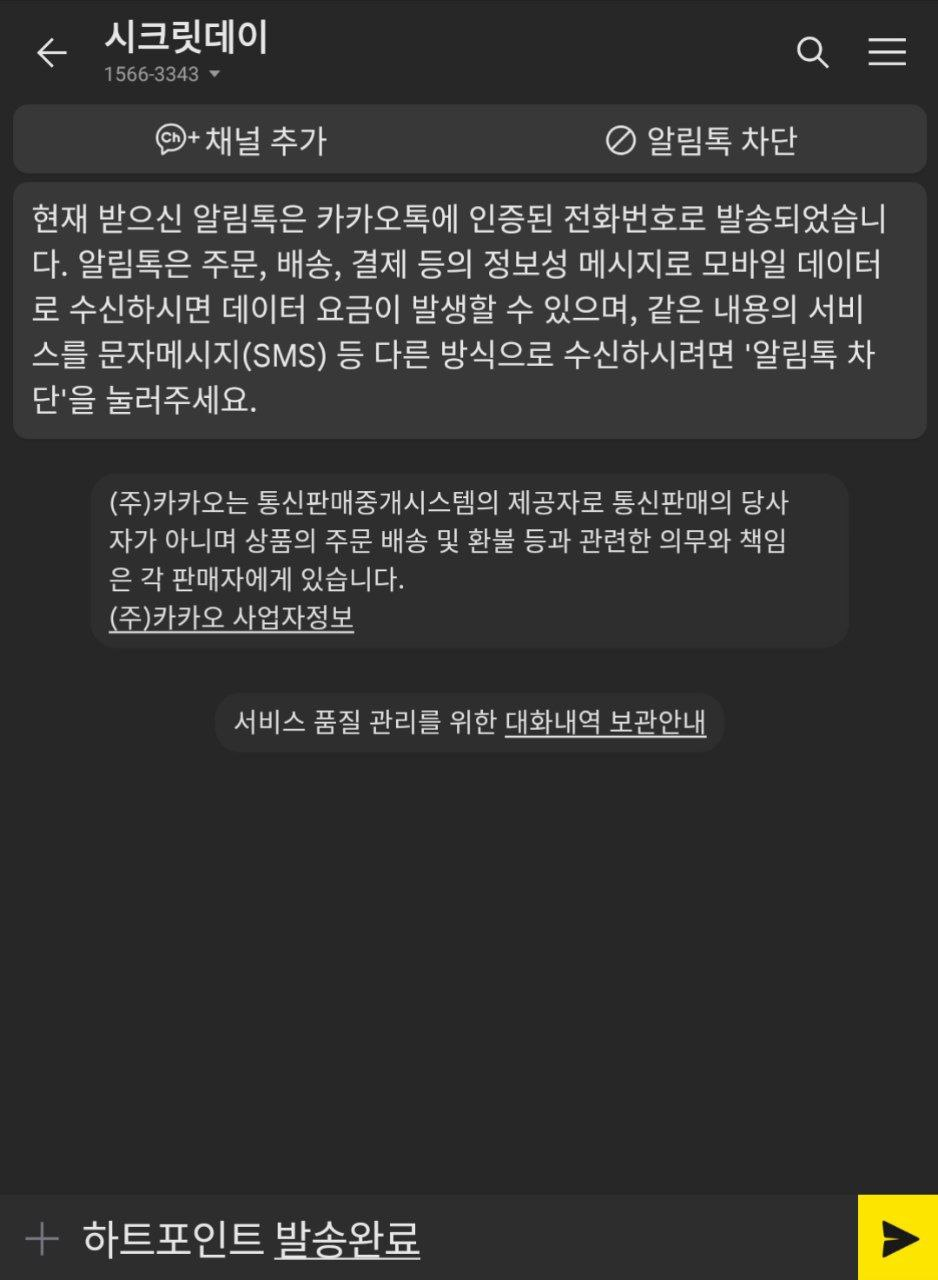 시크릿데이 를검색하면 채널이 뜬다