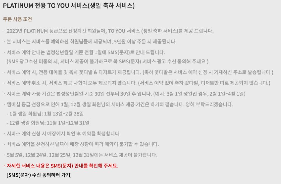 PLATINUM 회원의 경우, TO YOU 서비스가 제공