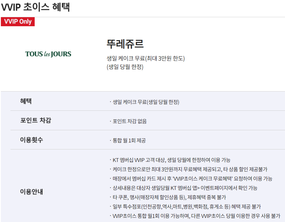 23년 1월 기준으로 VVIP인 경우 뚜레쥬르 생일케이크 (생일 당월)무료
