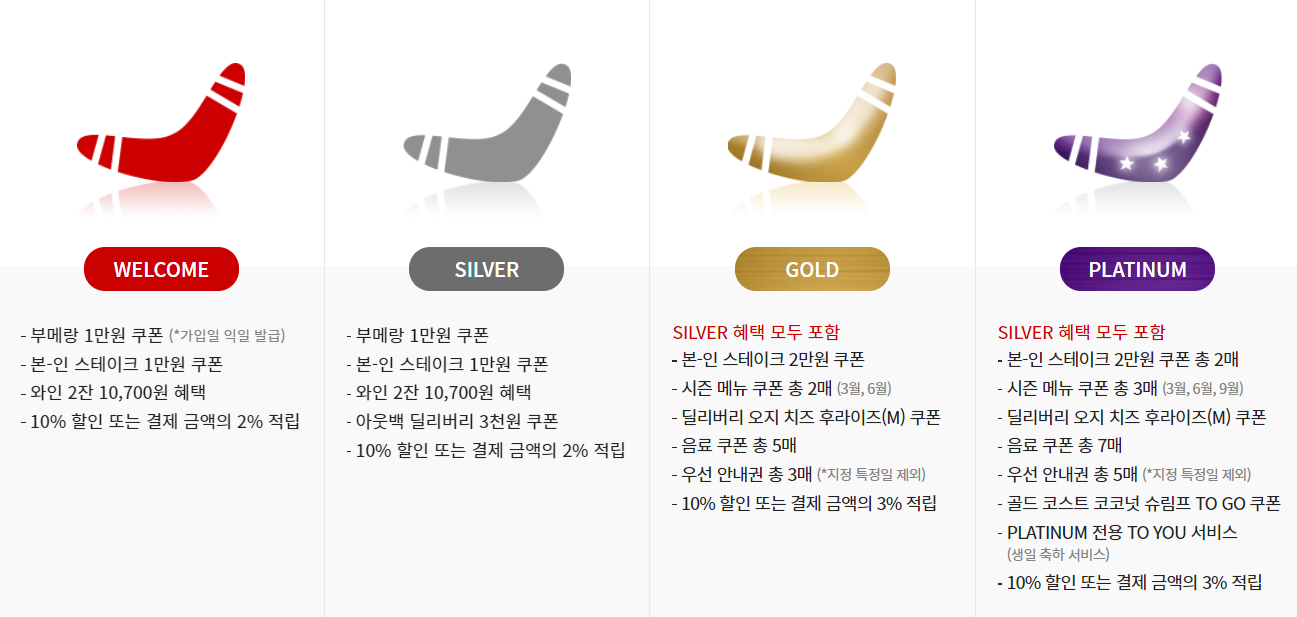 해피포인트 - 멤버십 라운지 - 등급별 혜택