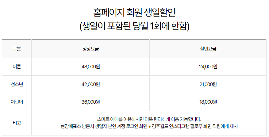 우대프로그램 | 꿈, 사랑, 행복의 경주월드!