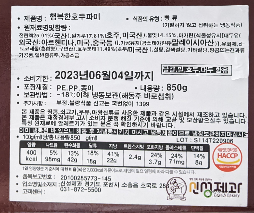 [신성제과] 행복한 호두파이850g : 신성 제과