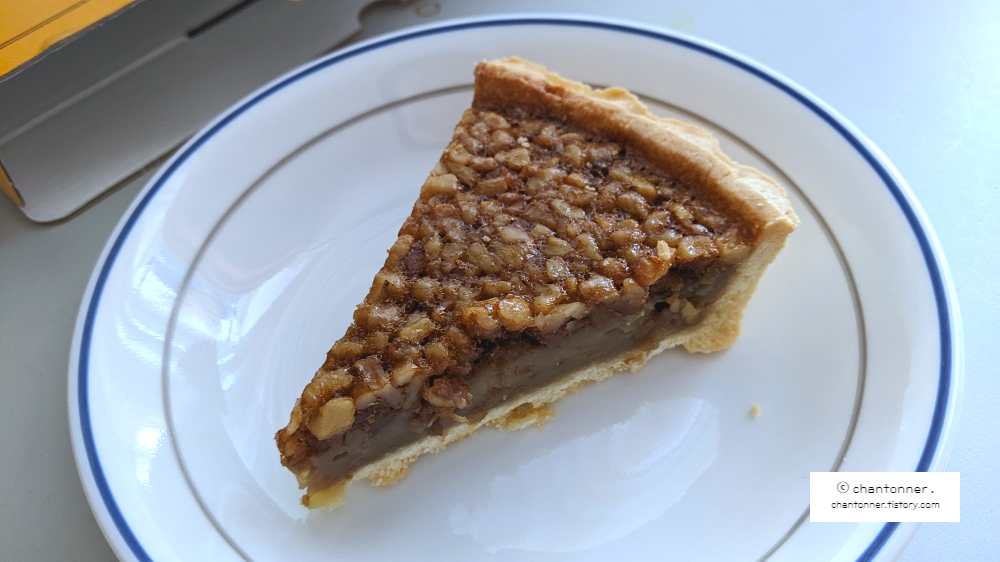 피칸은 아니고 다진호두가 올려져있다. 개인적인 취향으론 다져있는 호두파이가 먹기에도 수월하고 식감도 느낄 수 있어서 더 좋아한다.