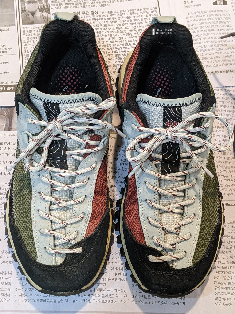 두 신발 다 세척한 적이 없는 고어텍스재질이라 걱정되었지만, 뒷면에 테스트 후 별 일 없어서