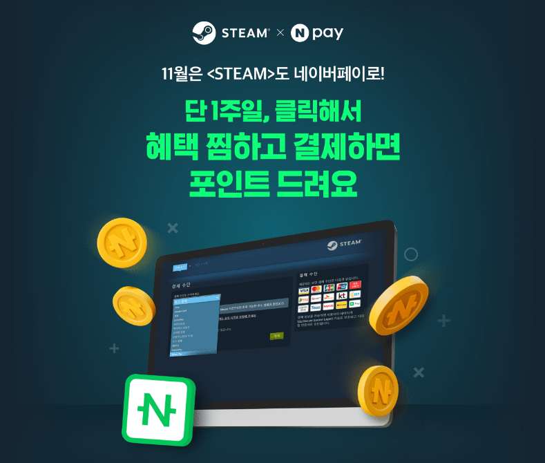 네이버 찜을 하고 네이버N페이로 스팀에서 2만원 구입시