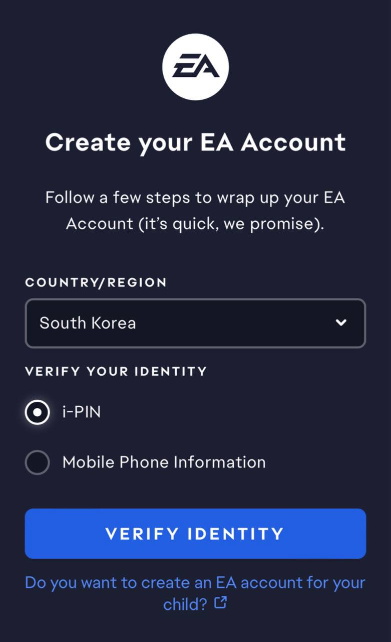 핸드폰 켜고, 사파리로 EA.com 들어가서
